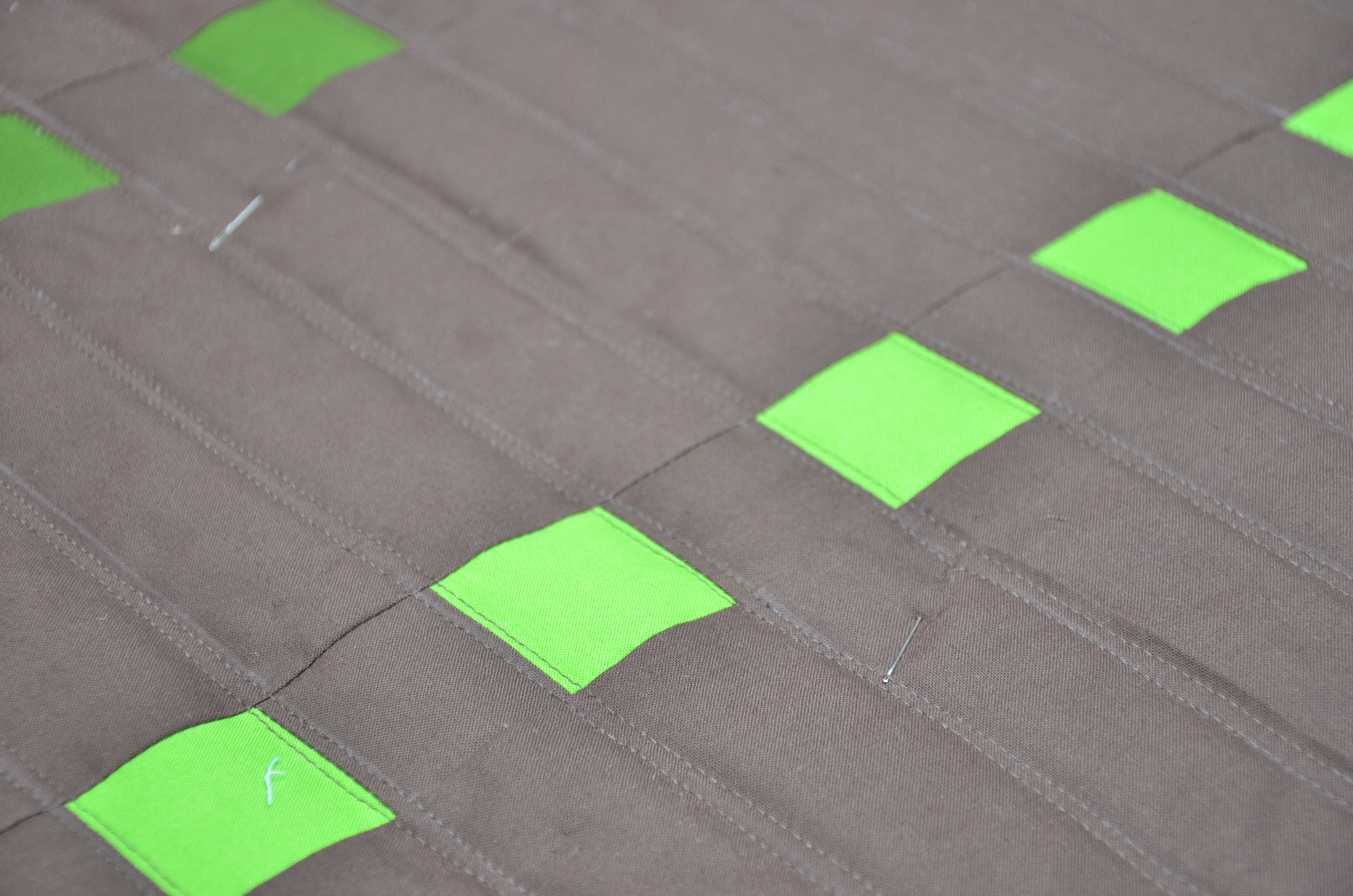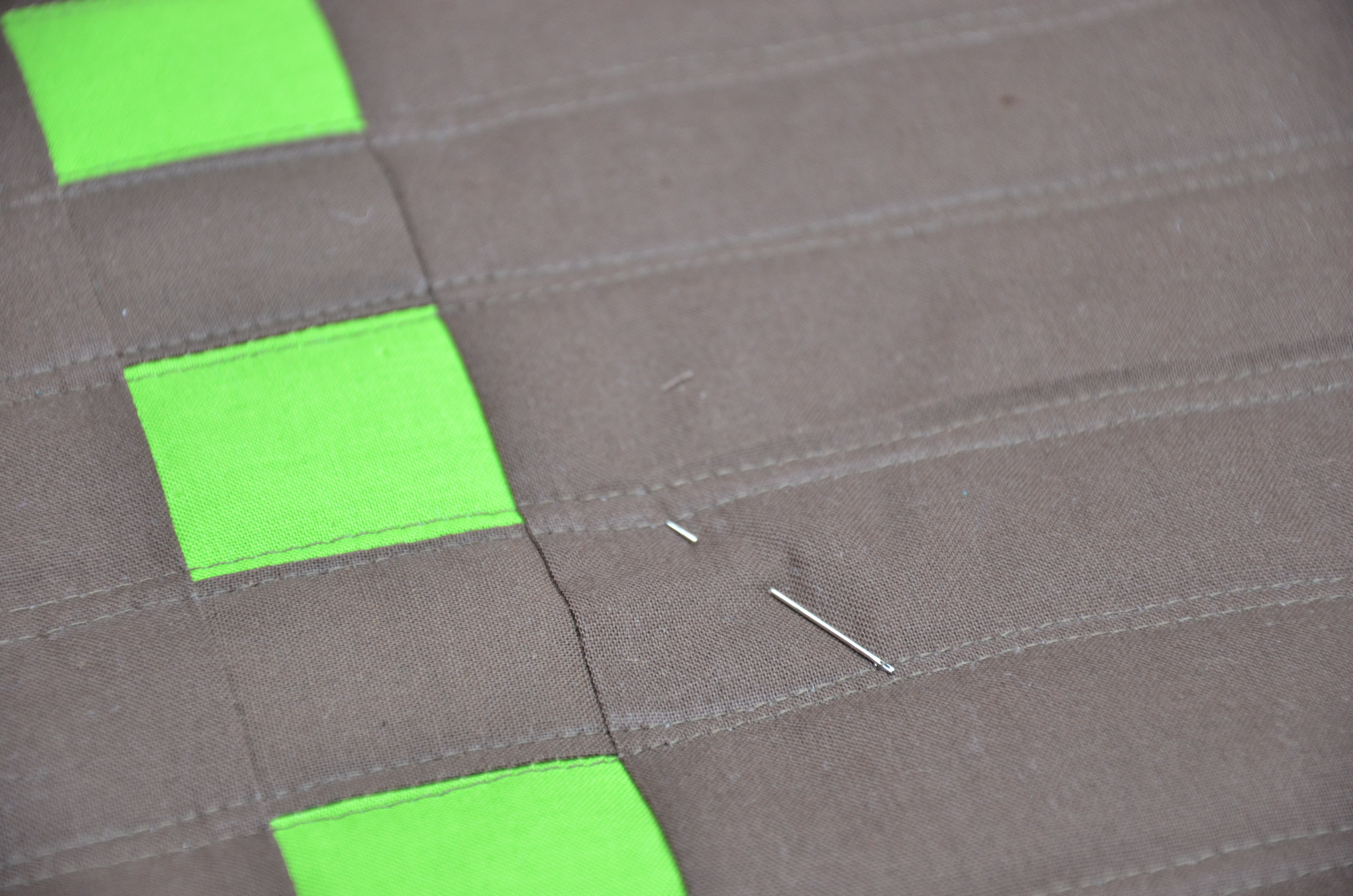 And you wonder why I was using needles as pins? Well, I’ll tell you what I know. I know there is much less chance of getting the head of a pin stuck under the foot of the machine, hanging up your stitching, when their is no pretty, colorful, little, round head… Those flat little daisy pins are fine and good, but they bend too easily and it’s much harder to remove the plastic from your stitching line than it is an eye of a needle….. Just sayin’……..