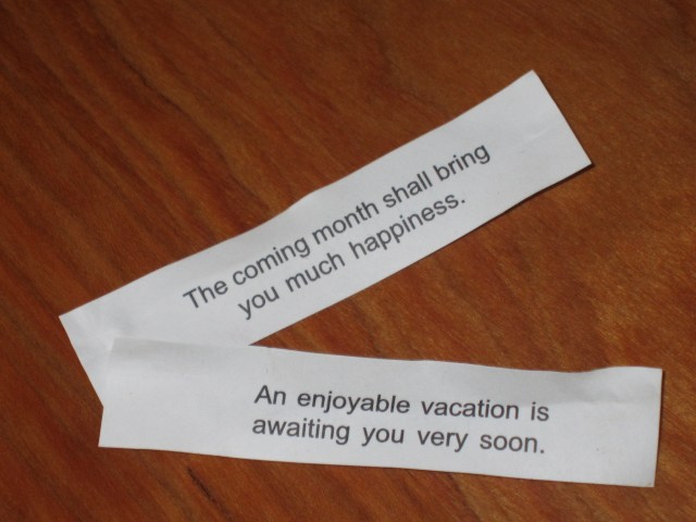 Seems as if every time we go anywhere there are fortune cookies being served, someone else gets mine.  Always.  “I got yours”  “You got mine.”  “Who’s did you get?”  That’s not just me, is it?  Tell me it happens to you, too?