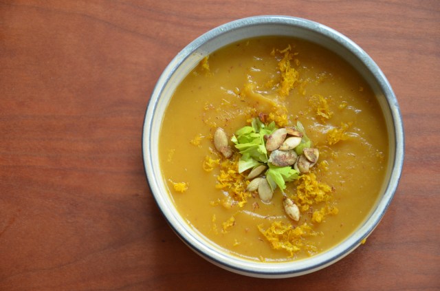 Orange, Ginger, Butternut Squash Soup topped with orange zest and spicy pepitos is a definite repeatable dish.