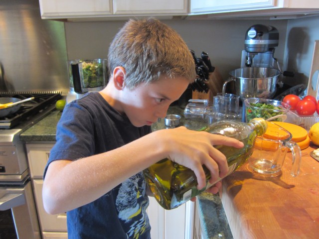 And your olive oil.  Measuring skills are pretty important if you want to eat.  And accurate if you want to eat well!