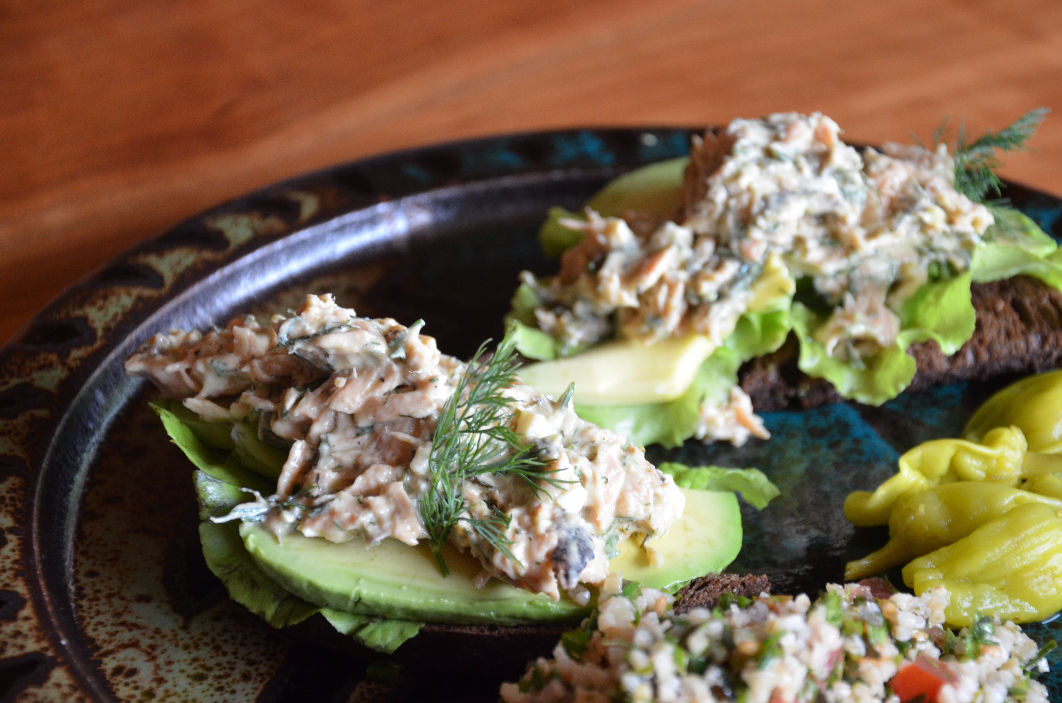 Serve open faced atop grilled pumpernickel on a bed of lettuce and avocado slices.