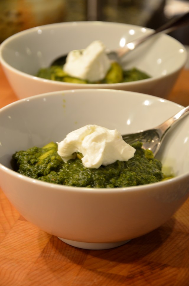 Blend the spinach mixture in a food processor to a fine purée. That’s what we call gravy.