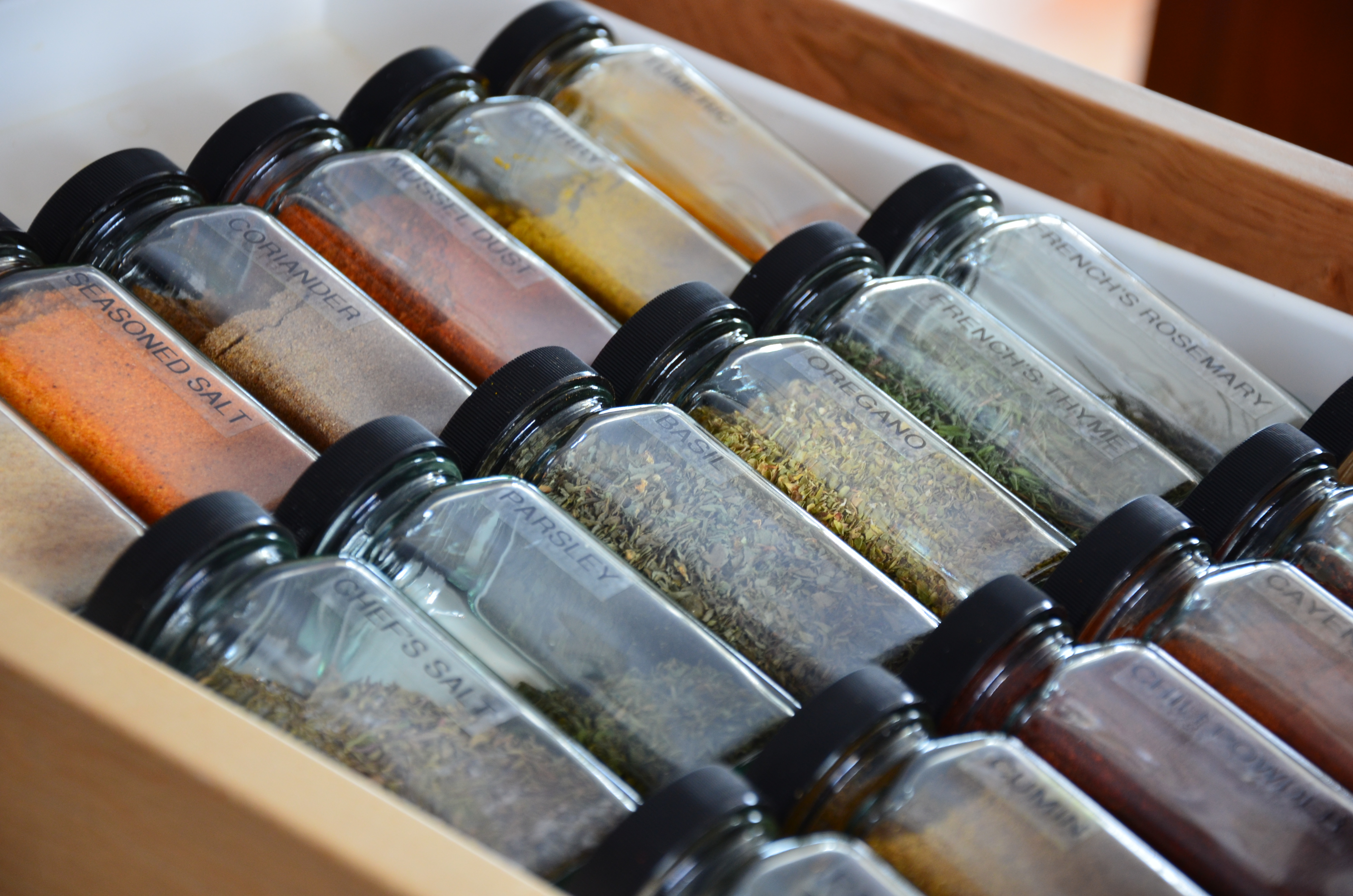 So…. she recently posted the most beautifully lit photos of her completely, organized spices. They were just gorgeous pictures. All the yellows, oranges and smokey reds lined up on pretty little spice steps. All simply labelled and organized. Gorgeous. Made you want to get in the kitchen and create something that tasted as good as her photos looked.