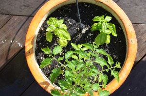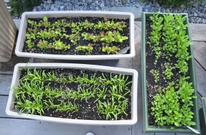 We’ve had painters hanging around , well, not really hanging around, they are actually painting the exterior of the cottage. Anyway, one of them told us he was so inspired by our deck garden, that he went home last weekend and planted one for himself. He asked all kinds of questions about what we planted. He also wanted to know what the celery was, LOL! Pretty cool feeling to think we inspired someone!