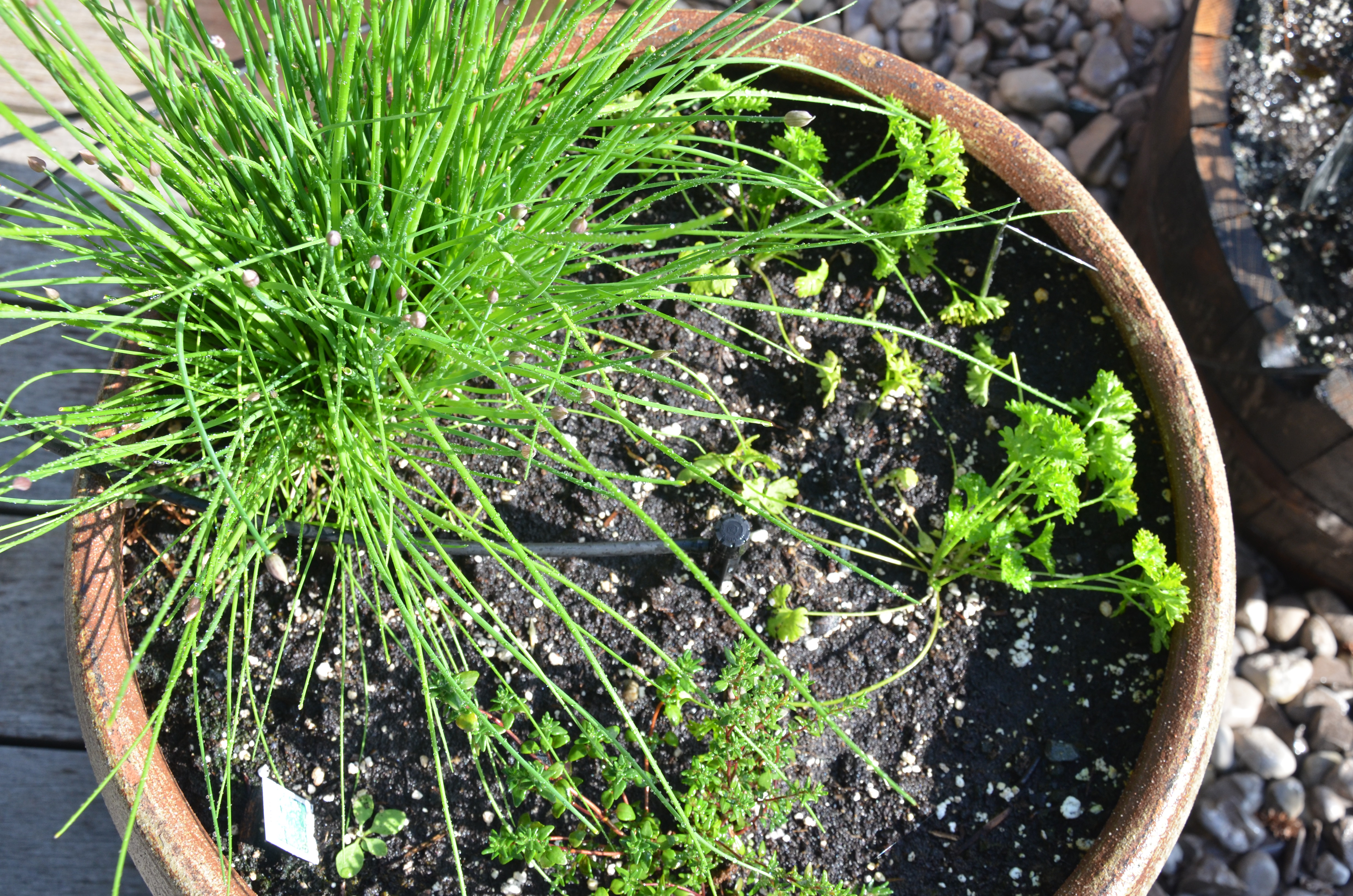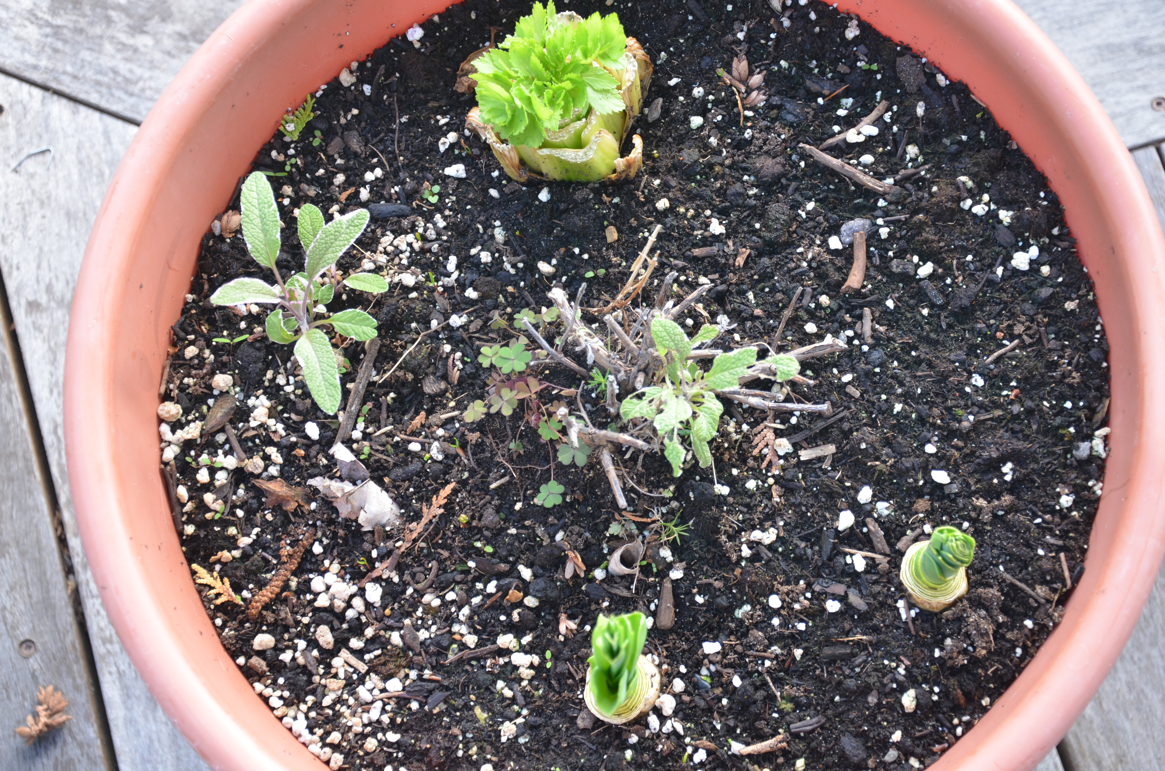 Celery re-grown, new Sage, last years Sage, re-grown Leeks ~ Chives, Parsley and Thyme