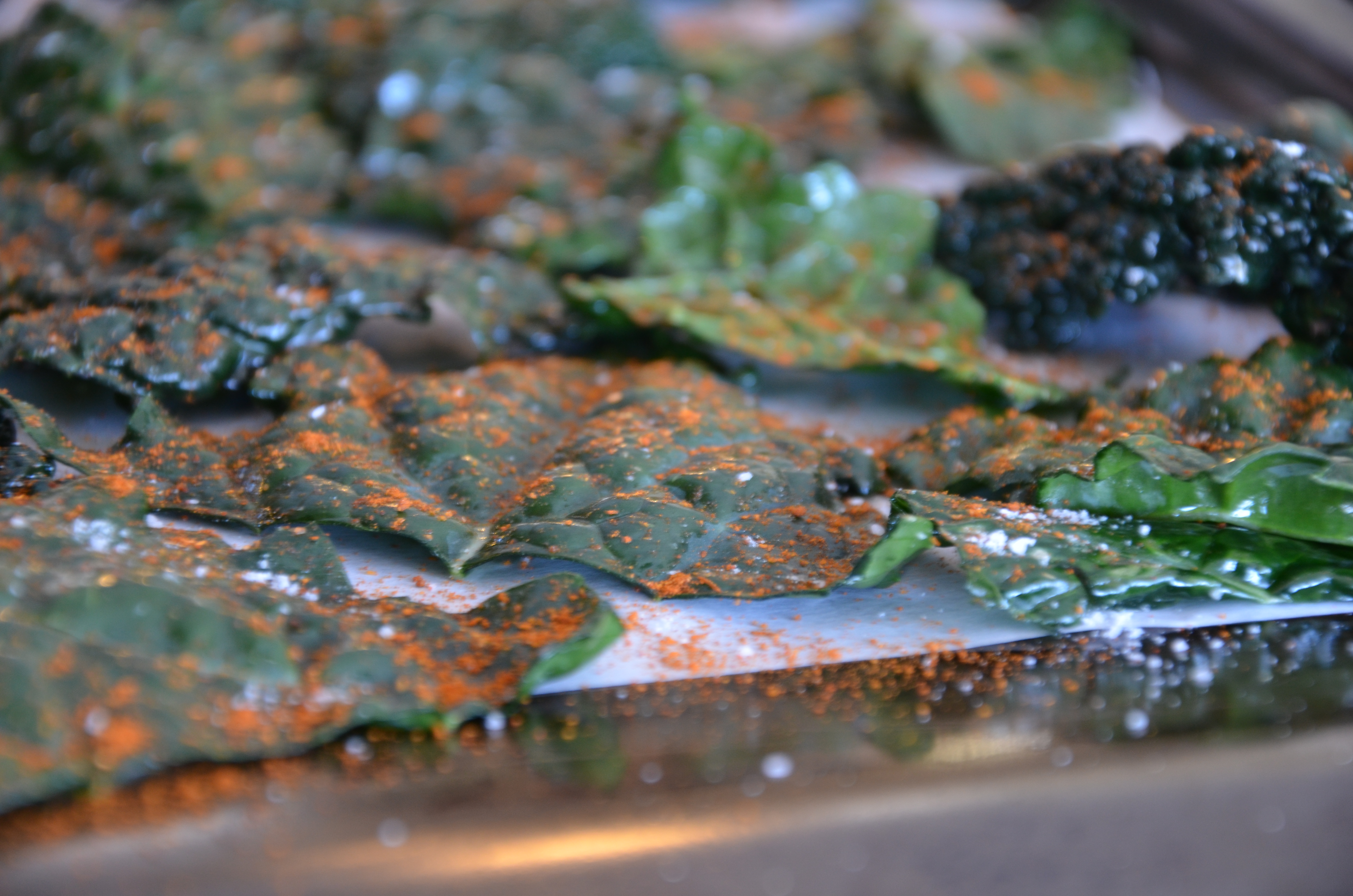 As for the salt, a little goes a long way. Because you are dehydrating the kale your salt sprinkling  can easily become overwhelming. Same with the cayenne!