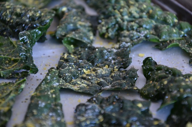 This is how we do them. We actually used 2 bunches with three different seasonings. One was a curry style flavor using Penzey’s Tandoori seasoning, one was the nutritional yeast (who can’t use more B vitamins?!) and the third was a southwest flavor using chili powder, cumin and cayenne.