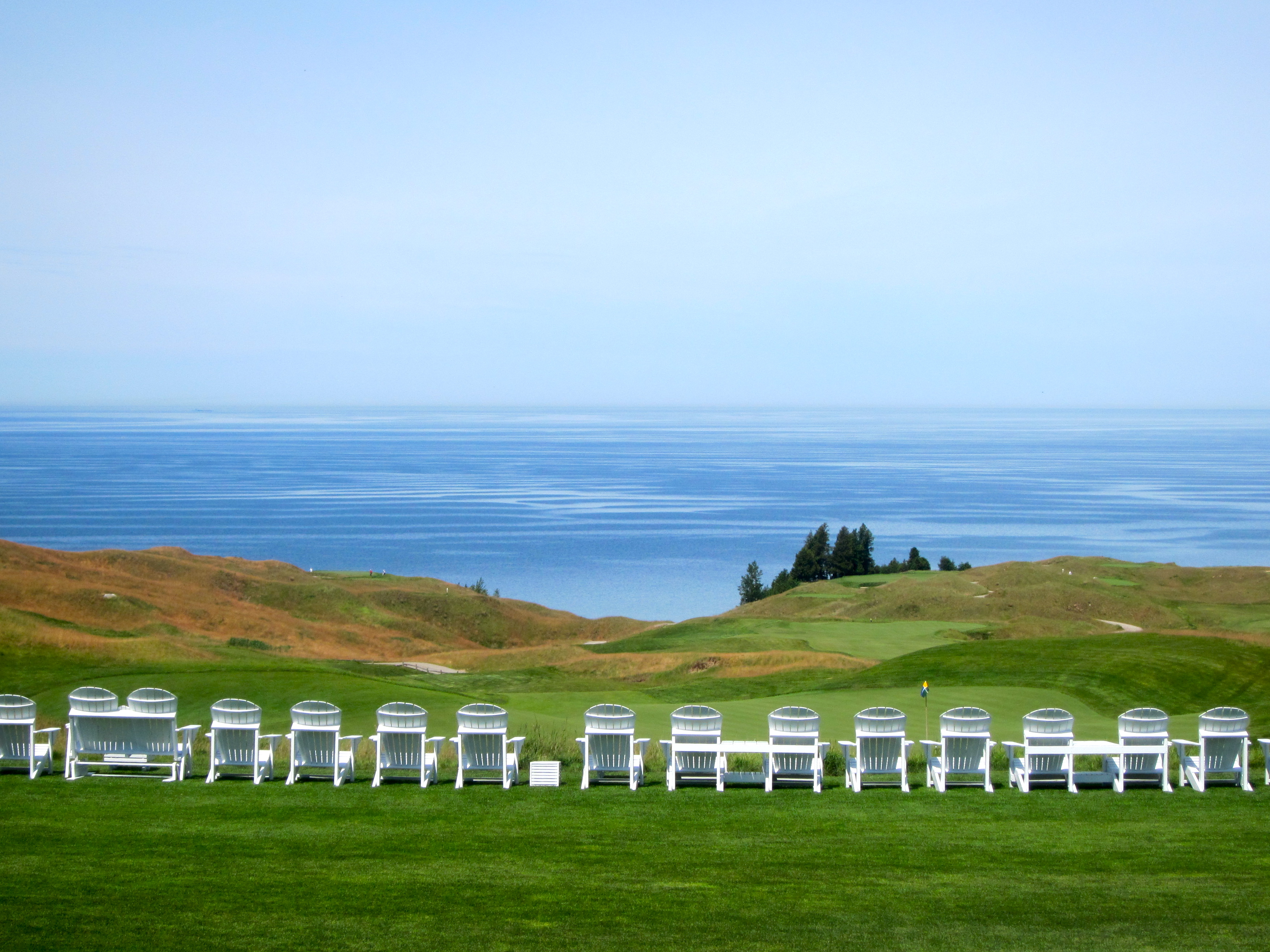 Anyway, we then went out for lunch at Arcadia Bluffs, maybe you’ve heard of it? It is a pretty well-known golf course, #10 in the top 100 public golf courses in the country, sitting on a bluff, overlooking Lake Michigan. We enjoyed a bite, sitting out on the front deck, taking in the view. My very favorite spot on this golf course!