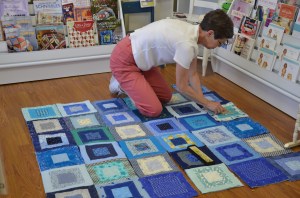 And we worked wherever we could find a spot. Carol was lucky she claimed a spot on the floor, early on, most of us worked from our laps. But then you can tell she knew what she was doing!