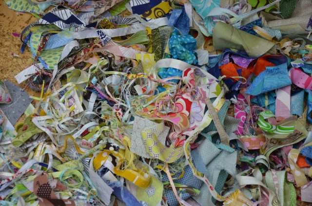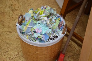 The trimmings. I am so sick of saving the littlest, tiniest scraps. I mean, today alone, I created this mess. Some people save even the tiniest of scraps….. for someday.