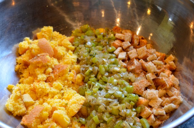 My must have Thanksgiving dish would be the dressing. Some people call it stuffing, but since we aren’t stuffing the bird, we call it dressing! This is my recipe for southern style cornbread dressing. It is easily made gluten free (and even dairy free with appropriate substitutions) by using 1 package of Pamela’s Cornbread mix, according to the recipe of the bag, for southern cornbread and then your favorite GF bread. Works like a charm!