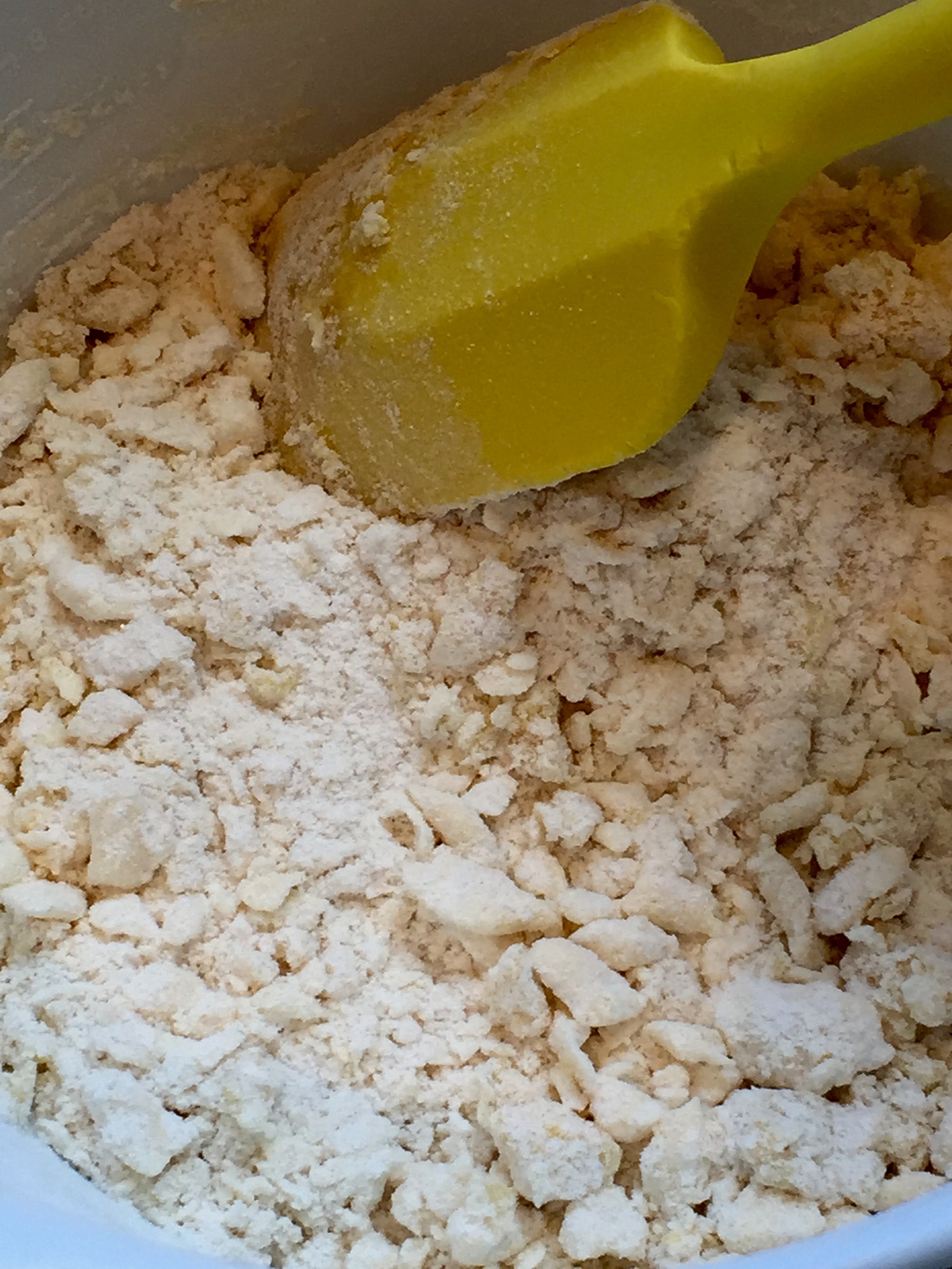 2. In a medium bowl, stir together 1/2 cup sugar, 1 1/2 cups flour, and baking powder. Mix in salt and lemon zest. Use a fork or pastry cutter to blend in the butter and egg until you crumbly. I always aim for pea sized pieces of butter. Pat half of dough into the prepared pan.