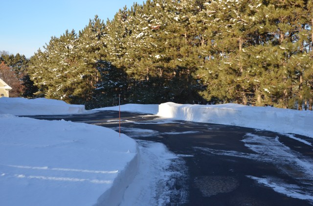 Quick trip out to admire the snow piles, the 20 footers are really pretty, by the way, and I am once again in business. And another thing….. Our driveway is sparkling blacktop, now, not a lick of snow or ice, anywhere to be seen. Not another one like it anywhere, not that I saw. I guess I, now, better understand why the old neighborhood guardian asked if we had a heated drive. No, you know better. You plowed the drive the winter it was being built and the winter before we moved in. No, not heated then, not heated now. Nice, of you, not to notice us working our buns off as you drove up and down the street trying to pack it down…….. Anyway……
